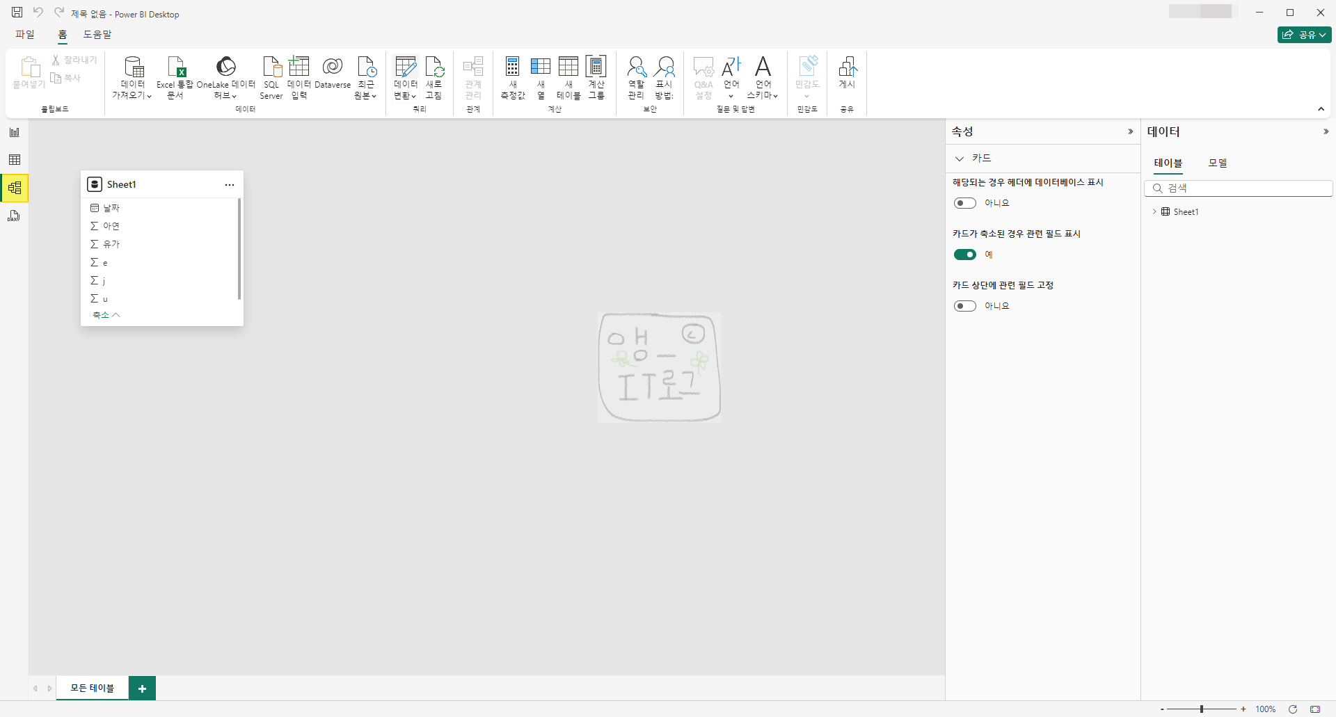 데이터를 가져온 후, Power BI의 여러 탭에서 데이터를 확인할 수 있습니다.