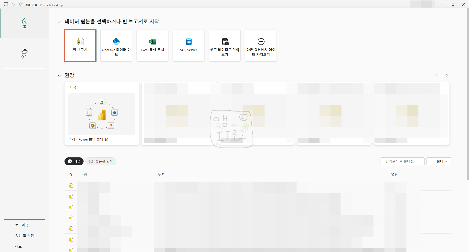 - Power BI Desktop 실행: Power BI Desktop을 열어줍니다.