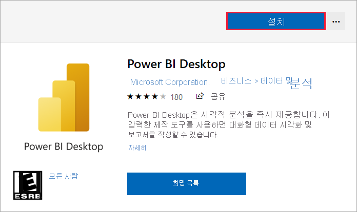 이 링크는 MS Store로 이동하여 Power BI 다운로드 할 수 있는 페이지로 이동합니다.